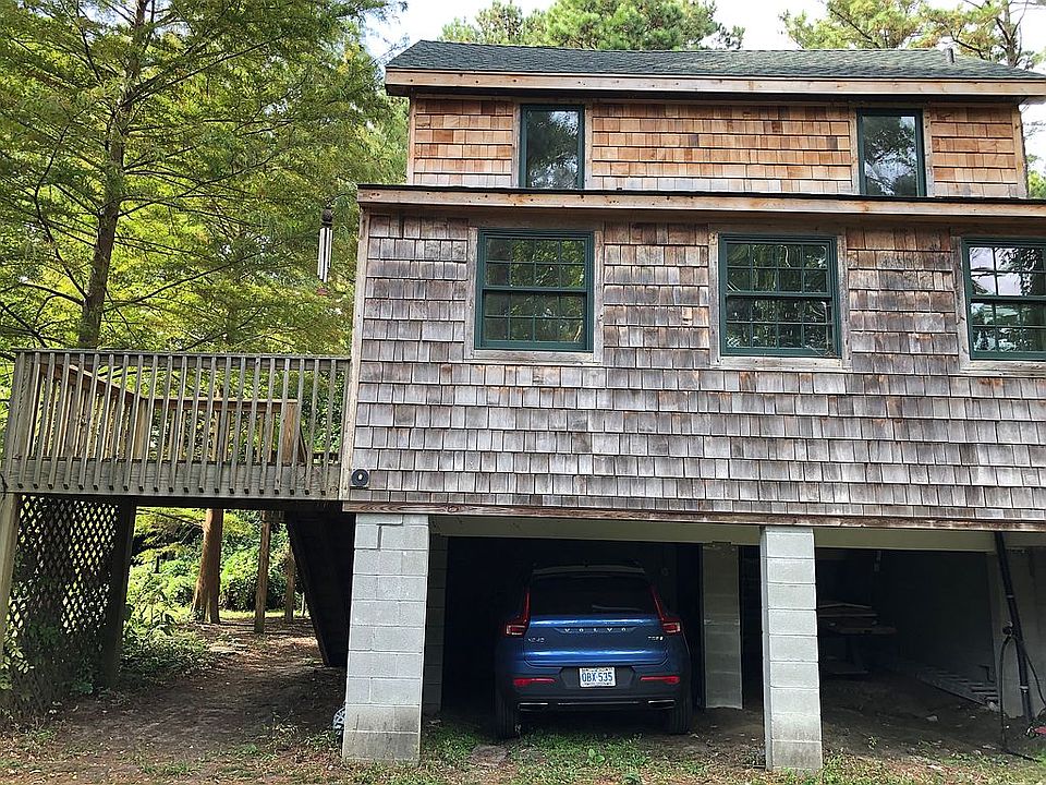 The house was elevated eight feet in 2012, remodeled and brought up to county code including wiring, plumbing, staircase and insulation. A HVAC heat pump was installed at the time with a mini split system downstairs and an auxiliary gas heating stove. The property is on county water, the septic tank was cleaned and pumped April 2019. Sept 2020 a new roof was put on with a transferable 5 year warranty (Patriot Roofing).