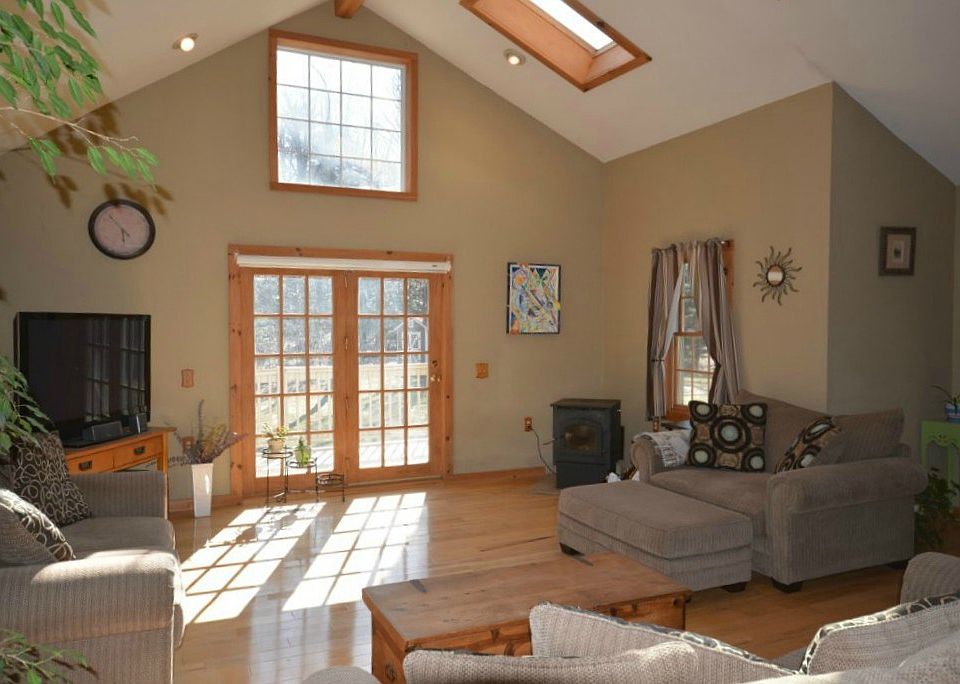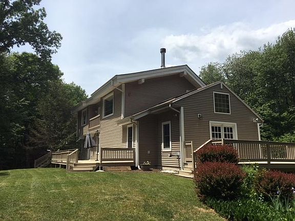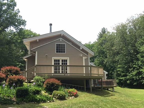 Are you looking for something a bit different with lots of room for family and friends? This fantastic post and beam contemporary is what you're looking for. This home is very open and sunny with beautiful wood accents throughout. The hardwood floors not only fit the character of the house, the warm hickory tones of the hardwood make you feel cozy and right at home. Do you like to entertain? The decks and landscaped yard are perfect for those backyard gatherings of friends and family. And, the house is large enough to accommodate a crowd. Have a fire in the firepit on a cool night and enjoy the stars. The home is close to everything (easy commuting distance to Manchester and points south) but is set back from the road and has a private feel - your own personal wooded get away. The master bedroom and bath has it's own deck and a hot tub. There is a large bonus room/ game room above the garage and a family area on the second floor overlooking the great room. Enjoy gardening in one of the two gardens and put your mower and tools in one of the two sheds. There is room for everything!