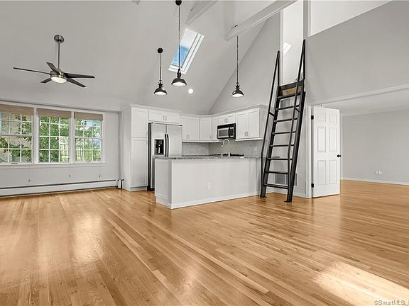 Be prepared to be wowed by this spectacular fully renovated designer 1 bedroom end unit w/loft down by the water in Stamford. Natural light pours into the fully open concept living space w/soaring 2 story vaulted ceilings and palladian windows. Modern gourmet kitchen with granite counters, marble backsplash, & a large peninsula that overlooks the dining and living room w/wood burning fireplace. Spacious bedroom with oversized walk-in closet and en-suite bath. Bright and airy loft w/skylights can serve as a guest room, office, or den. Privately situated towards the back of the complex, this end unit condo also has a deck w/views of the harbor! There is a 1 car attached garage along with additional reserved owner parking spaces, and a generous visitor parking lot at the entrance of the complex. Don't miss the pool and jacuzzi overlooking the manicured courtyard and harbor! Minutes to Old Greenwich, Stamford train station, and a short water-taxi ride across the marina to restaurants and parks at Harbor Point. Walk down the boardwalk to Prime Steakhouse or The Crabshell for al fresco dining along the marina. Your permanent vacation home awaits! Tenant responsible for: Air Conditioning, All Utilities, Cable TV, Credit Check, Electricity, Heat, Hot Water, Insurance