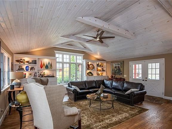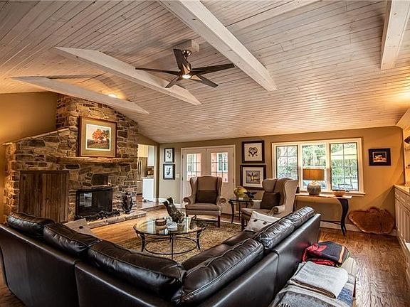 Welcome home to this piece of paradise nestled on over 4 private acres! You will love the high, white washed ceilings, custom built shelving, hardwood floors, and stone fireplace that you can enjoy from both the LR and DR. The dining room has custom windows that bring in tons of natural light, all open to the kitchen with white cabinetry, granite countertops, stainless steel appliance package, and a moveable island. Down the hall you will find 2 bedrooms and a full bath w/ a clawfoot tub. An office nook with darling shelves under the stairs completes this floor. Upstairs you will find your master oasis with barn doors, white-washed ceiling/beams, built-in dressers, a full bath, and French doors leading to a private deck overlooking the magnificent pool area. If that isn't enough, the backyard is the perfect entertaining spot with a huge patio, inground swimming pool, hot tub, and a separate screened in area for dining. This home is truly a gem you need to see!