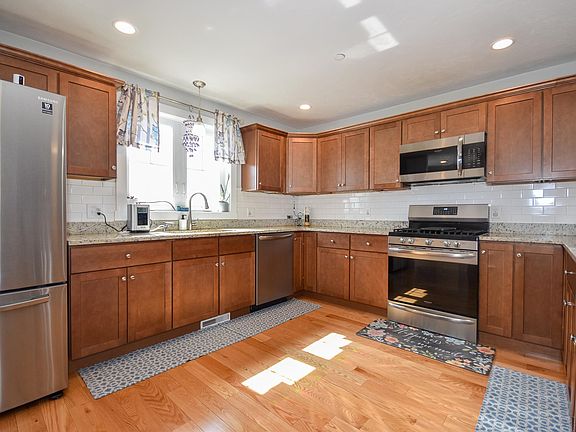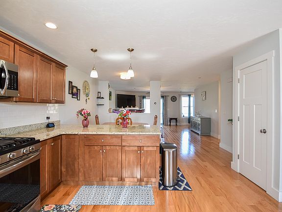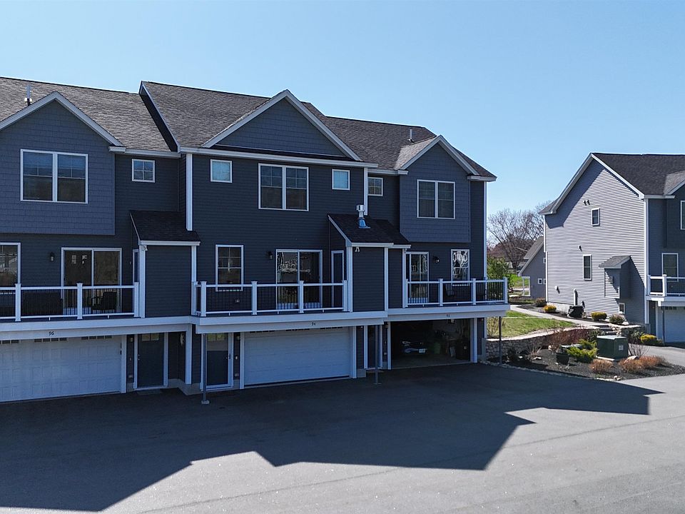 Experience modern living in this beautifully maintained townhouse at Green Ridge, built in 2020. This thoughtfully designed condo offers a bright, open-concept layout perfect for everyday living and entertaining. The kitchen is a true centerpiece, featuring granite countertops, shaker-style cabinetry with soft-close doors and drawers, and stainless steel appliances. Warm hardwood flooring runs throughout the main living areas, complemented by a pantry and an additional storage closet for extra convenience. The kitchen flows effortlessly into the dining and living spaces, where a cozy gas fireplace and large glass sliders create a welcoming and airy atmosphere. Step outside to a private balcony overlooking the peaceful pond — the perfect spot to start your mornings or unwind at the end of the day. Upstairs, the spacious primary suite boasts a walk-in closet, a second closet for extra storage, and a private bathroom with a granite-topped vanity. A second bedroom and an office on the same level offer flexibility for guests, work-from-home space, or hobbies. The tandem garage accommodates two vehicles and offers additional storage in the utility room. Ideally situated just minutes from the vibrant downtowns of Dover and Portsmouth, and with the Amtrak station less than 10 minutes away, this location combines comfort, convenience, and accessibility. Don't miss the opportunity to make this move-in-ready home your own! Showings to begin at open house Sat 5/3 from 11am-1pm
