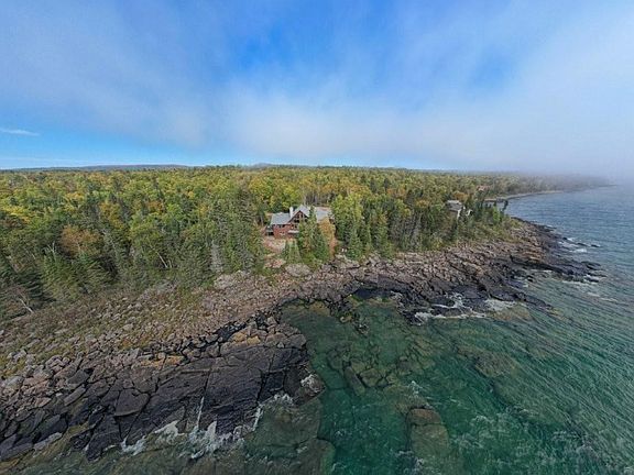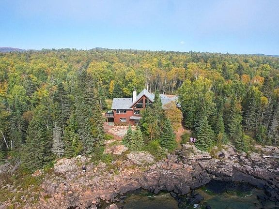 The Big Lake they call Gitche Gumee! To live by it is to come to know the ways of an inland sea: endless sky-blue rollers on a summer’s day, moody November gnashers, ice comes, goes, sings on the rocks all winter, a calm spring day reflecting the variations of green-up. To really become familiar requires days upon peaceful days of observation and study for the lake is always changing and the skies above shifting and coloring. Nice Hovland location just east of Grand Marais, MN where the commute to town is gorgeous. Elbow room here on Stonegate Rd, 11+ acres, 317’ of frontage. This is home! Or a getaway, and all is ready to go. Current owners have taken such good care. New boiler, new heat pump mini splits, new water softener, 2021 roof, stained 2022, 2025 natural landscaping. Just show up with your dreams, a home where All will want to visit - start living a Northwoods’ life under the Aurora Borealis, alongside the trout, among the thriving healthy forest, a neighbor to creatures great and small: flying squirrels, pine marten, loons, moose, pileated chop, chopping glad tidings. 3 baths, 3 bedrooms plus a neat loft, spacious rec room below that walks out to a gorgeous realm of pavers, landscaping, raised beds, boreal florals of every kind. The living room soars with a glass wall prow under a paneled ceiling. Fabulous stone fireplace. As much kitchen as a chef needs. High-end all around with granite countertops, maple floors. It is the heart and soul of the home for each lucky owner to dwell here: making food, memories, kinship – love! Dining room is attached and has tasty views of the lake with easy access to the deck for grilling, cocktailing, or that important conversation. Convenient pantry and laundry off kitchen. Main bedroom eyes every moment of the lake, ensuite sprawling bath with soaker tub and walk-in shower. Private deck and fireplace to snap, crackle you into dreamland. Couple more bedrooms to accommodate the whole gang. One is private, cozy and decked out with Italian tiled wood fireplace. Or, make one of these a craft area, workout or office space. Two car attached garage with ample handy storage above. Nestled into the woods, in its own little world, is a dreamy sauna. Private enough to go au naturel and large enough for the crew to unwind after a cool day exploring the country. Thoreau’s cabin awaits the vision of the next owner. Cool weather, pine-scented air - a home to match the splendor of the Big Lake!