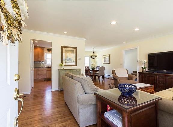 This stylish, sophisticated 3 bedroom, 2 bath home sits on a level, private acre of lawns and trees - perfect for outdoor entertaining! The light-infused main level boasts an updated kitchen, airy living & dining area that reflect the extraordinary love & warmth this home emits. Five short steps up to the bedrooms & full contemporary bath. The lower area, with walkout to grounds, has a generous family room with fireplace & a handsome updated bath with glass shower. The residence is conveniently close to superb schools, exquisite dining, shopping, hospitals and commuter routes. A new septic system is also a huge plus for this property which has a deceiving 1834 sq/ft of space! True gems don't last long ... don't miss at your chance!!