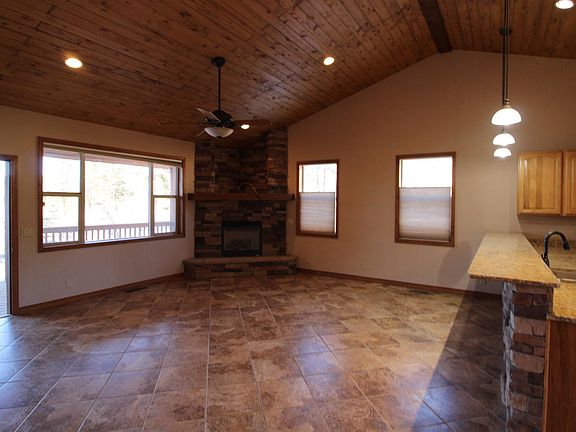 This custom home is a steal at this price great for a 2nd home and easy to lock-n-go. The open floorplan makes it feel much larger. Oversized porch just waiting for rockers so you can enjoy the lake and mountain views. Tile flooring in living room, dining area and kitchen. Beautiful stack stone gas fireplace and T&G ceiling makes this such a great, cozy home. The kitchen and all bathrooms have granite. From kitchen and dining room there is a door that leads to the large back yard. Down the hall to the master on the left with a large walk in closet with built in's and master ensuite with double sinks. The two guest rooms both have built-ins in closet and share a bathroom. The laundry room doubles as a mud room and connects to the oversized 2 car garage .