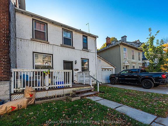Heritage Downtown Investment Opportunity! Built in 1857, this stunning red-brick heritage property offers a rare chance to own two separate buildings under one title in the heart of downtown, 94 Sydenham & 214 Johnson St. The home at 94 Sydenham is a grand 3-storey Victorian home featuring soaring 12-ft ceilings, 6 bedrooms, 2 full baths, and expansive living and dining areas. 214 Johnson is a charming 2-storey brick home with 2 bedrooms, 1 full bath, a spacious kitchen and living room, plus an attached garage with automatic doors. Professionally managed and thoughtfully upgraded: New Boiler (2018), Kitchens/Bathrooms remodel (2018), Paint (2018), Roof (214 Johnson: 2022), this unique property presents incredible potential whether for income generation, multi-generational living, or a prime downtown investment.