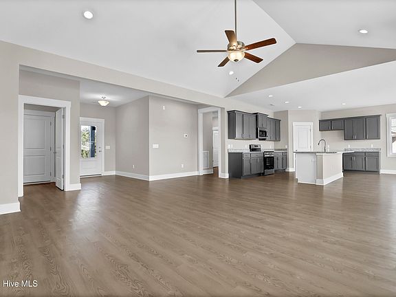 This elegant home offers a thoughtfully designed floor plan, ideal for both relaxation and entertaining. As you enter, the welcoming foyer leads directly into a spacious living room, which flows seamlessly into an adjacent covered porch, perfect for enjoying the outdoors. This porch also offers the option to be screened, providing a comfortable space for year-round enjoyment. **photos of similar build**