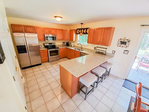 Turn key ranch style home located minutes from the city, lake, & golf course! This ranch style house has many accents that make it the perfect work-from-home layout. The large windows and sliding glass doors fill the open concept floorplan with beautiful natural light and accent the vaulted ceilings in the comfortable living room. Light quartz countertops in the kitchen reflect the sunlight making the home feel open and airy! The master bedroom and en-suite are in a wing of its own allowing for full privacy from the two other bedrooms. The backyard has a concrete patio perfect for grilling and overlooks a large private backyard! New roof in 2019 and a large oversized garage is great for storage.