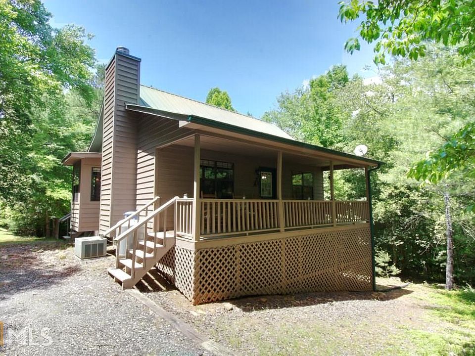 Lots of privacy at this 2 bedroom cabin near Lake Nottely. Just over one acre of level and gentle terrain. This well maintained cabin features vaulted ceilings, light wood interiors, two porches and an unfinished basement. It comes fully furnished with everything you need, just bring your toothbrush. This one won't last, so come see it today!