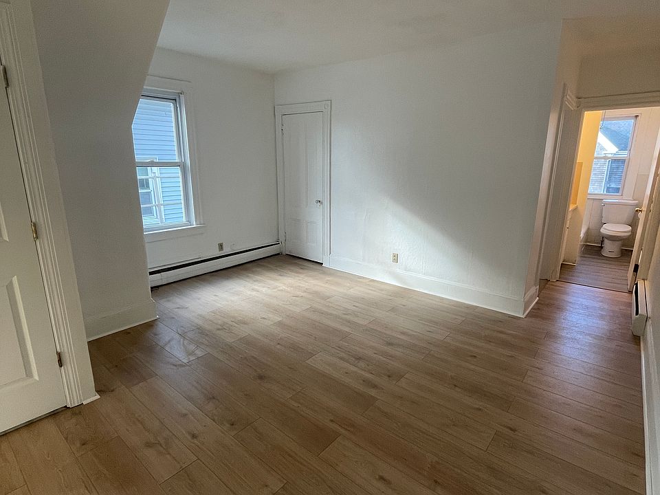 YEARLY 3 BEDROOM RENTAL. This 3 bedroom is pet friendly! This unit was recently renovated. Located on the second floor and third floor of the building, this spacious 3 bedroom apartment is recently renovated: new kitchen with new appliances including dishwasher, new floors in the living room/kitchen/downstairs bedroom, new carpet, new shower and sink hardware in bathroom, and new fresh paint throughout. Walking up a few stairs you enter the apartment to find the large living room with closet, 1 bedroom with large closet, bathroom with bath / shower. Head up the carpeted stairs to the third floor to a large landing perfect for a second TV room or office space and also you'll find 2 large bedrooms. Parking available with the unit. Coin operated laundry located in the basement. Tenants pay utilities - gas, electric, water and internet. Available now! 1st month and security deposit due upon lease signing. Tenant is responsible for utilities. Pet friendly! On site parking included in rent. First month rent and security deposit due at lease signing.