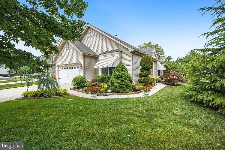 Here's the One you've been waiting for! The Hartford Model with Loft, one of the largest models in Leisuretowne with 2, 084 sq. ft. of living space. You'll immediately admire the manicured lawn and professional landscaping of this corner property with a side turned two car garage. Popular open floor plan with rich hardwood flooring which flows throughout the first floor, while the kitchen and sunroom feature Manning tile - no maintenance required. The entire interior of the home has been freshly painted in a neutral palette and there are custom window shades throughout, and adjustable blinds in the sunroom door. Extra large eat-in Kitchen offering a custom backsplash, gas range oven, microwave, dishwasher, refrigerator, and garbage disposal. There is also an abundance of cabinet space to include a large pantry and desk area (or your new coffee bar:) The Dining and Living Rooms are both open to each other for ease of entertaining. The added enclosed Sunroom offers a small patio out to the side yard. Main Bedroom is huge with a walk-in closet and second closet. Master Bath offers a large soaking tub with separate shower and double vanity. The Second Bedroom, also a good size, has a full Hall Bath right outside the door. A generous sized walk-in Laundry Room with shelving, as well as inside access to the two car garage completes this level. Upstairs you'll be surprised at the size of the Extra Large 27 x 13 Loft with wall to wall carpeting, recessed lighting and a half bath. Just perfect for your overnight guests! Some other noteworthy amenities include Window Awnings to help with energy costs in the summer - helps to keep the house cool. Central Air and GAS HEAT, Inground Sprinkler System, Retractable Front Screen Door, Ceiling Fans in Kitchen, Living Room, Sunroom, both Bedrooms, and Loft. Both Bathrooms have upgraded Tile Plank Flooring. Garage has a Large Attic with pull down stairs. Plenty of storage space provided by two hall closets, also a linen closet, and three storage closets in the loft. The sellers are also pleased to offer a Home Warranty for your added peace of mind. Leisuretowne is an active 55+ community offering two pools, two clubhouses, libraries, dances, clubs, etc. Schedule your appointment to preview it today and make it YOURS. B-l-i-n-k and it'll be gone!