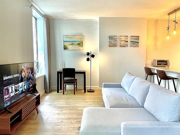 Live in the center of SONO right on Washington street next to all the best restaurant Norwalk offers. River and beach short stroll away, Metro North station 5mins walk. Beautiful large unit with 9 ft ceilings and updated kitchen, bathroom, all brand new, furnished, overlooking backyard and parking. All utilities, wifi, TV included. Ideal for young professionals, couples.