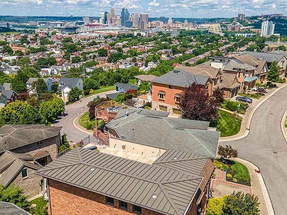 This Custom home is an entertainers dream with amazing views of NKY & Cincinnati! 3 finished levels of living space plus a rooftop terrace complete with wet bar and fireplace. Total of 3 decks and a patio. Large, open concept Kitchen, Living, and Dining. High end appliances. Huge master suite with walk in closet. Italian tile. Beautiful hardwood floors. Theatre Room. Wine Cellar. Elevator services all 4 floors. A+ location within minutes to everything.