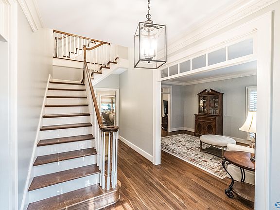 Absolutely Dreamy! This timeless, Georgian home is filled with custom details and masterful craftsmanship. It is unlike anything you’ve seen and has the feel of a magical heritage property. Located in the heart of Scottsboro, mere blocks from Lake Guntersville, this 5 bedroom, 4 1/2 bath home is nestled on just over 1 acre and offers a resort-like lifestyle with private gardens, peaceful courtyards, idyllic screened porches, large gunite pool, and pool house with kitchen and bath and a "secret" cottage. This property also features a fenced in dog run, ample storage throughout and many luxury upgrades incl. sauna shower & heated floors in primary bath! Home has 3 above ground floors.