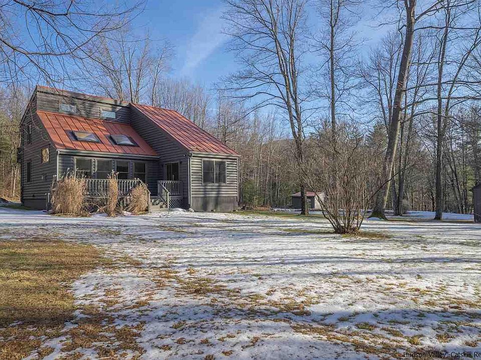 This Woodstock area four bedroom, two bath contemporary home is nicely sited on a level landscaped lot with a very nice pond, two small outbuildings and seasonal mountain views. The first floor features a living room with vaulted ceilings, gas fireplace and skylights, a country kitchen with granite countertop and all new dark stainless appliances as well as two bedrooms and a sunny south facing deck. The second level has two bedrooms, an office/den and a solid balcony on the North side of the home. There are beautiful wood floors throughout the house. Mount Tremper is a rural hamlet in the Onteora School District conveniently located between Woodstock and Phoenicia. Hiking, biking, rail trails, tennis courts, markets and schools are just a few minutes away. This Catskill mountains home is in excellent move in condition and waiting for new owners!