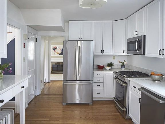 Meticulously maintained 3 bedroom, 2 full bathroom home full of character and charm sits on a level lot at the corner of Morris Street, just 2 doors down from Marvin Park. This warm, inviting residence features a bright white kitchen with stainless appliances and quartz countertops, first floor family room with wood-burning fireplace, a formal dining and living room, plus a full bathroom & mudroom. The good-morning staircase with custom cabinetry leads to 3 bedrooms, including the large master bedroom, with custom closet and direct access to the full bathroom with laundry. Bonus 150sf heated, carpeted room is in the basement. Outside, a covered porch overlooks the wood-fenced yard, mature plantings and bluestone patio. Several thoughtful improvements have been made during the current ownership, including roof, exterior paint, Pella windows, stainless kitchen appliance suite with gas cooktop, mantle, recessed lights & chic lighting fixtures, custom window treatments and washer & dryer.