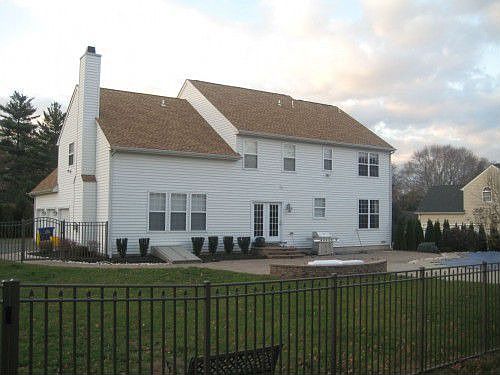 This outstading Colonial feels like new. Tucked back for privacy and one of 4 homes built 9 years ago by a local builder. As you enter this stately home you will find yourself in a foyer with cathedral ceilings, hardwood floors and a sweeping staircase. 9ft ceilings throughout the first floor give a sense of breath and the two piece crown molding and wainscoting add character.In the newly remodeled kitchen you will find SS appliances, cherry cabinets,granite counter tops and a veiw of the in ground pool surrounded be EP Henry pavers. The basement is an entertainers dream. Plush carpet, full bath, custom bar, movie theater, and a gym! Master suite and Jack and Jill suite, sprinkler, alarm, 2-3 car garage and MORE! COME SEE FOR YOURSELF! The seller of this exceptioanl home will foot the bill for the first season of pool use and lawncare!!