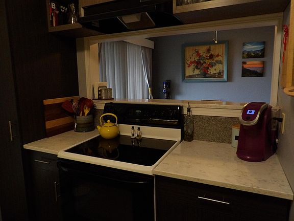 This condo is in perfect condition! Completely remodeled 4 years ago. The beautiful fireplace is wood burning. Nice sized bedroom closets. There is a storage area outside next to the patio area. Bookshelves will stay. New air conditioner installed 4 years ago. The HOA covers anything that's outside like new windows or issues within the walls. This condo will not last long!