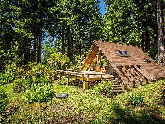 FROG POND IN A QUIET WESTHAVEN FOREST with calming & serene sounds greeting you as you enter this delightful small cottage/cabin style home tucked in your own redwood grove. Approx 1000 sq ft, 1 bedroom + spacious loft, two baths, wall of windows, new vinyl windows, hardwood & laminate flooring, radiant heat in master bedroom & bathroom, new vanity & fixtures, jetted tub, wainscotting, efficiency modern kitchen, Rinnai heater, wood stove, modern bamboo ceiling, suntube. Loft is open, flooded with light & adds sleeping space or office, den, library. Large, expansive deck, covered wood storage, rain water catchment system, leaf proof gutters, covered carport, storage. This small home packs a big punch. Plenty of sunshine and in popular location with easy access to freeway, stores, & more!