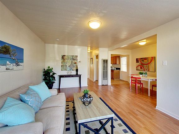3 Bed/1 Bath with updated Kitchen including Newer Appliances with Laminate Floors throughout Living Room and Bedroom and Tile in Kitchen and Bathrooms. Yard and on-site Gated Parking. Near Coliseum BART