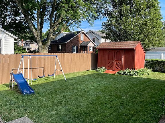 ** Working with buyer's agents, free to give us a call! ** This all brick bungalow is full of character and move in ready! It features a large kitchen and dinette area with white wood cabinets, stainless steel appliances (2019) and cafe style shutters. Archways provide a welcoming entrance into the comfortable living room with gas fireplace and formal dining room with surrounding chair rail. The spacious upstairs bedroom with ceiling fan has hard wood floors and a closet while an additional room comfortably fits a twin bed or desk for personal office space. Solid wall to wall flooring covers two hidden attics for additional storage. The lower level is finished with 395 square feet of carpeted living area! A large laundry room leads to the half bath and walk in shower. An additional unfinished pantry with shelving and furnace/hot water tank room provide even more lower level storage space. Central air, 200 amp service, garbage disposal and air cleaner included. Step outside to relax on one of two covered porches on the front and side of the house or make your way to the private fenced backyard with garden area, cement patio and large storage barn with a loft. A concrete block retaining wall leads to the 1.5 car garage that provides plenty of extra storage space. There is a new roof (2019) on the house, garage and storage barn, along with a new masonry crown (2018) and ChimSaver repellant on the chimney. Schedule a private showing to see this truly unique home!