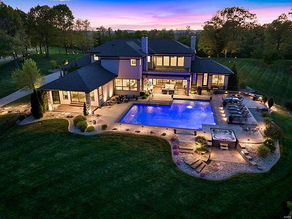 Welcome to 940 Bluff Rd- nestled on nearly 8 acres, your new home offers incredible views of the Mississippi River & the iconic Arch, a stunning sight just 26 miles from your backyard. Welcome to an exclusive gated community boasting only 12 prestigious lots, where 9 homeowners already relish their slice of paradise. Prepare to be mesmerized by the modern elegance of this architectural marvel, boasting a stucco exterior w/ exquisite stone accents. The meticulously manicured landscaping is equipped w/ a lawn irrigation system & magnificent lighting, setting the stage for the grandeur that awaits within. Step inside this crafted home, where no expense was spared in the creation of this masterpiece. With 4600 sqft of luxurious living space, every room offers a haven of comfort & style. Dreaming of expansion? The unfinished W/O basement offers limitless possibilities to tailor this estate to your desire. Your new home isn't just a residence—it's a testament to the art of living lavishly.