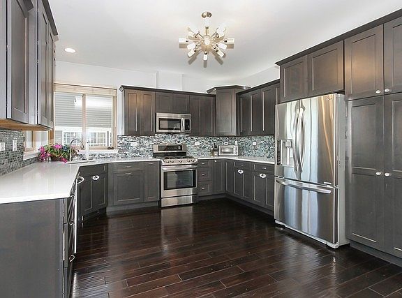 Stunning home situated on a quiet street with a premium lot. This sun drenched home features dramatic two-story foyer and formal living room. Living room flows to the dining room that features elegant pillars. Completely updated kitchen featuring Quartz countertops 42" cabinets, stainless steel appliances and glass/tile backsplash. Sunny eating area with glass sliders to the fabulous deck overlooking the beautiful yard. Stunning family room with tons of natural light, media niche and cozy brick fireplace. 5th bedroom/office, full bath and laundry room complete the 1st floor. Four large light and bright bedrooms on the 2nd floor including master suite with private luxury bath, dual vanities, soaking tub, separate shower and two huge walk in closets. Full basement ready for your finishing touches and 3 car attached garage. Updates include African Mahogany wood floors, Travertine tile in master bath, New roof, gutters and downspouts (2019) Solar panels, garage doors, driveway, custom window treatments, light fixtures, nest thermostat and so much more! A must-see home!