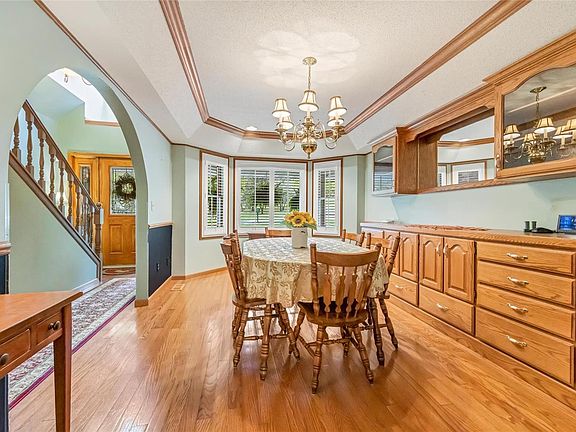 1.5 story home on just over 1 acre of land! The curb appeal on this home is to die for! The newer steel roof should catch your attention as well as the adorable front porch, perfect for sitting outside and enjoying the views. As you enter the home, the dining room is to the left with a custom built-in buffet and bay window. Off the dining room opens to the breakfast room, kitchen, and living room. An entertainer's dream to host everyone in one open space! Off the living room is the covered deck that overlooks the property and back to trees. Rounding out the main level is the master bedroom w/ a bay window and the master bathroom with 2 large vanities. When you head upstairs you will find 2 large bedrooms and a full bathroom. Lots of light throughout the house, skylights are featured on the main and upstairs. The finished walk-out LL gives plenty of space to spread out and lots of storage! Can't forget the HUGE oversized 3-car garage! Minutes to shopping, schools, & entertainment.