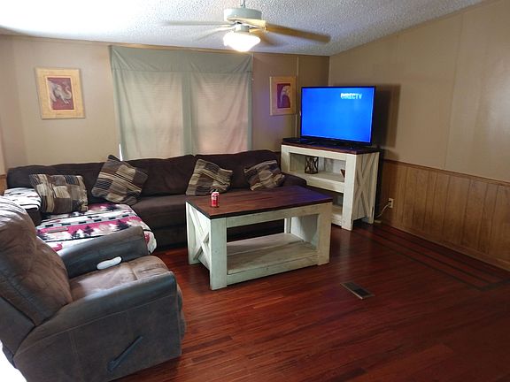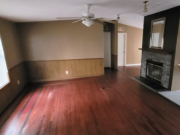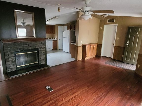 Private 5.1 acres with neat/ clean double wide manufactured home. 3bedroom 2bath with laminate wood flooring throughout living areas. Large Living room with wood burning fireplace. Oversized kitchen with multiple work areas. Split bedroom system. Master suite has 2 walk in closets as well as large side room would make great office/ workout nook or additional storage area. Secluded/ wooded land hidden from road. New HVAC unit in home.