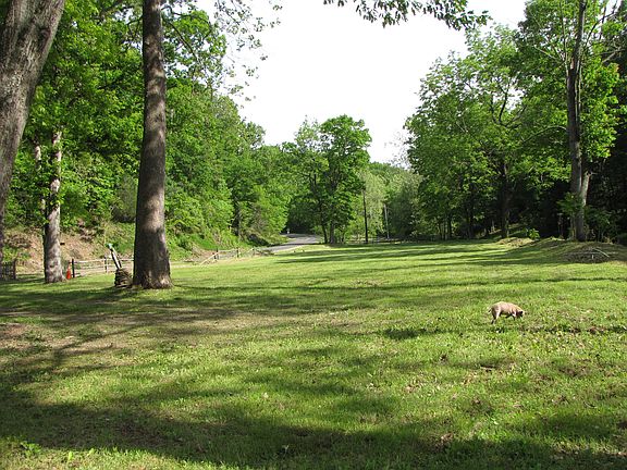 Direct waterfront on 2 bodies of water, your own private pond, and Manassas Creek. 2 story hse, detached 30x60 shop, large pavilion w concrete pad and electric on pond, all on 9 acres. Level land and private driveway. Not on the mountain. 4 min. to I-66, Linden exit and seasonal tourist traps. Zoned agriculture and allows many commercial uses. Train runs on the mtn above prop for an alpine setting