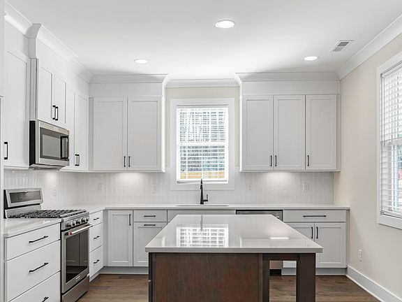 Discover the standard in modern living at The Park at Wimberly by Envision Homes! This stunning 4 bedroom / 3.5 bath end unit townhome includes a first-floor owner's suite, 2-car garage, beautiful kitchen, covered porch, and boasts over 2400 square feet of living space with maintenance free yard. Located just minutes from I-540 and Hwy 64 W in highly sought after Apex, NC. The elegant owner's suite bath includes walk-in shower with frameless glass and generous walk-in closet with wood shelving. The sizeable second floor features 3 bedrooms each with walk-in closet as well as 2 additional baths. The bonus room, with walk-in storage, provides the versatility to become a gathering space, office, or additional sleeping area. Scheduled for completion in November 2024. Photos are of various end unit homes that have been completed.