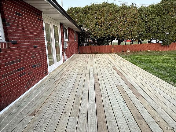 This delightful East Side Allentown ranch home has been thoroughly renovated from top to bottom. Its intelligent, open layout creates a welcoming atmosphere perfect for entertaining. Inside, you'll find shining hardwood floors, a brand-new eat-in kitchen with quartz countertops, a center island, and new stainless steel appliances ideal for culinary exploits. It features three roomy bedrooms, an updated main bathroom, fresh paint, and central air. The expansive lower level serves as a peaceful retreat, complete with a large family room and a stone wet bar designed for socializing. Outside, a private oasis awaits: a fenced yard with a new 30 x 12 pressure-treated deck leading to a 15 x 12 covered patio, providing a tranquil getaway. More than just a residence, this home is a haven offering comfort and picturesque views in a charming neighborhood.