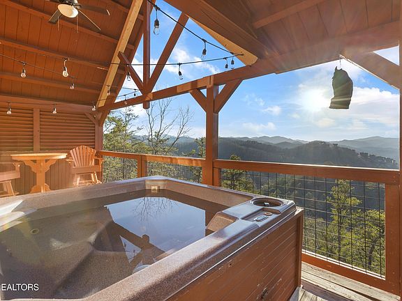 This inviting 1-bedroom, 2-bathroom cabin boasts spectacular mountain views and a spacious open-concept living area with large windows that frame the scenery. The downstairs game area offers fun and entertainment, with additional space for bunks. Step outside to a large outdoor area perfect for relaxation or gatherings, and unwind in the hot tub. Whether you're seeking adventure or tranquility, this cabin is the ideal mountain getaway.