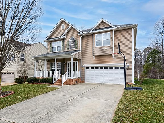 Fantastic 5 bed 3 full bath home in convenient Wake Forest location. Welcoming front porch. Home comes equipped with solar panels for ultimate energy savings! Spacious family room features built-in bookshelves & gas log fireplace. Bright & open eat-in kitchen offers center island, Corian countertops & walk in pantry. 1st floor bedroom with full bath. Huge primary suite includes trey ceiling, dual vanities, soaking tub with separate shower & walk in closet. Generous sized bedrooms. Expansive loft area/bonus room. Large laundry room with wash basin. New water heater 2019. New HVAC 2020. Deep backyard with great wooded views! Pool community.