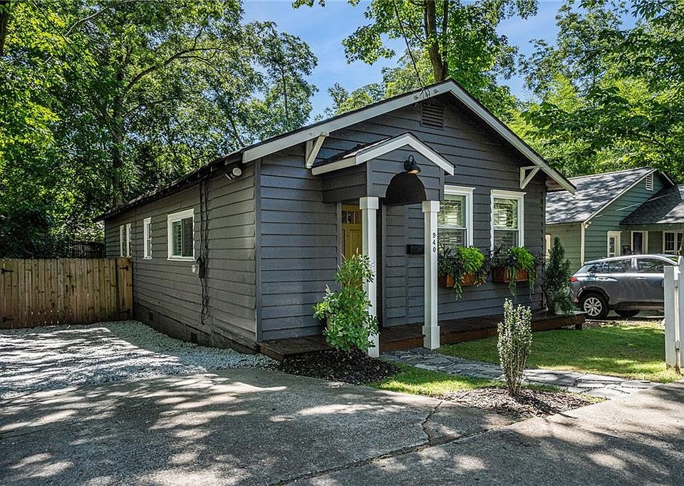 Welcome to the Grant Park neighborhood and this beautifully updated cottage home, brimming with character and modern conveniences, nestled on a quiet street just blocks from the Beltline's SE Trail, Grant Park, Zoo Atlanta, and more. Featuring an inviting "schoolhouse" facade and a thoughtfully maintained interior and exterior, this home offers the perfect balance of charm and functionality. As you enter, you'll notice that all windows are equipped with charming plantation shutters, allowing for abundant natural light throughout the home. The bright living spaces include a quaint dining area that flows into the kitchen, which features a breakfast bar, stainless steel appliances, and ample cabinet space. The kitchen leads to a pathway hall where the laundry is located, taking you out to the freshly stained back porch and deck, perfect for enjoying private views of your fenced-in yard. The outdoor living spaces are a true highlight—relax with coffee on the covered porch, host dinner parties on the spacious lower deck, or let pets and guests run free in the large, fully fenced backyard. There’s even room to dream about a home addition, a pool, a garden, or all three! Past the dining area, you step into the spacious owner’s suite, where the plantation shutters add an elegant touch. The custom-designed closet system maximizes space for your clothes and shoes. The private bath is a true retreat, featuring a skylight in the vaulted ceiling that fills the space with natural light. It includes a large walk-in "double shower head" shower, a new vanity with a marble countertop and extra shelves, a linen/towel closet and updated lighting and finishes. The fully renovated secondary bath showcases its original clawfoot tub with an added shower feature, blending historic elegance with modern comfort. The guest room also boasts an updated custom closet system for added convenience. Enjoy smart living with the Nest Thermostat for year-round energy efficiency. Recent upgrades include fresh interior and exterior paint, new flooring in the hall, kitchen, and dining spaces (June 2025), a freshly stained deck, and a newly installed stone walkway. Improvements to the attic and crawl space enhance insulation and air quality for lasting peace of mind. Additional features include a crushed stone driveway, a durable 30-year architectural roof with ~15 years of life remaining, and a location that puts you minutes from parks, dining, and trails — yet tucked away in a peaceful pocket of the city. Bigger than it looks and full of personality, this delightful cottage is a surprising find in the coveted neighborhood of Grant Park. Come see it today — and imagine your life here!