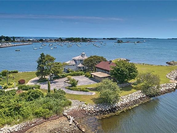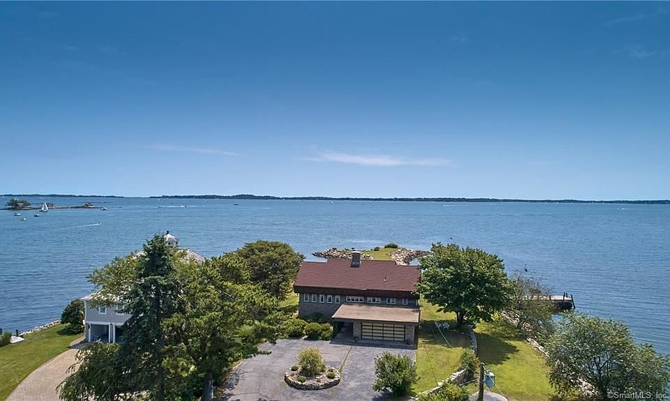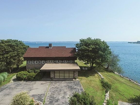 This amazing 4 bedroom, 3 bath oceanfront property offers breathtaking panoramic views of Long Island Sound, two private beaches and deep-water dock. This home with two car garage sits upon 1.2 beautiful acres of expansive oceanfront lawn, with over a 1,000 feet of water frontage. The high elevation provides endless ocean vistas while providing natural protection above the established flood plain. Step into the light-filled open floor plan with vaulted ceilings and expansive windows that capture the gorgeous surrounding water, or view the ever-changing picturesque display and soothing sounds of the ocean from your large wrap around deck and covered porches. The spacious first floor offers two bedrooms and a large great room anchored by a large centered granite stone fireplace for your cozy retreat. The second floor with two large 16 x 20 bedrooms includes its own private full bath that provides extra room for family and guest. The unfinished heated lower level offers 1,000 square feet of expandable living space with ocean views, a second fireplace, and has its own full bath. This space potentially provides a variety of uses including a second family room, media/game room, office or just additional space to retreat, and ready for your personal touch. Designed and built for easy and comfortable living, heres your perfect retreat for those who wish to escape to a laid-back lifestyle or to create an entertainers dream by the sea!