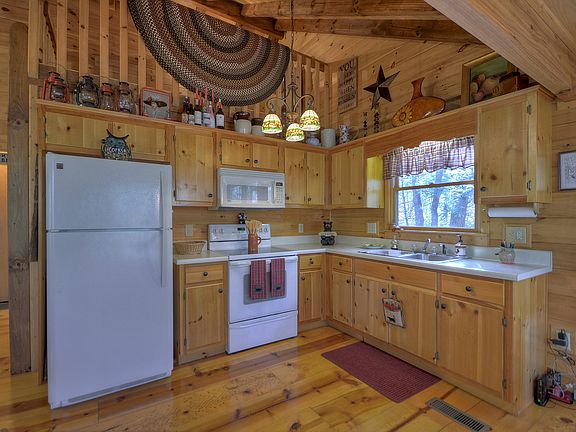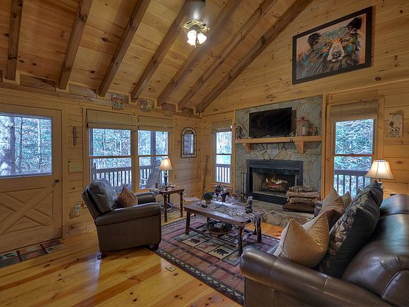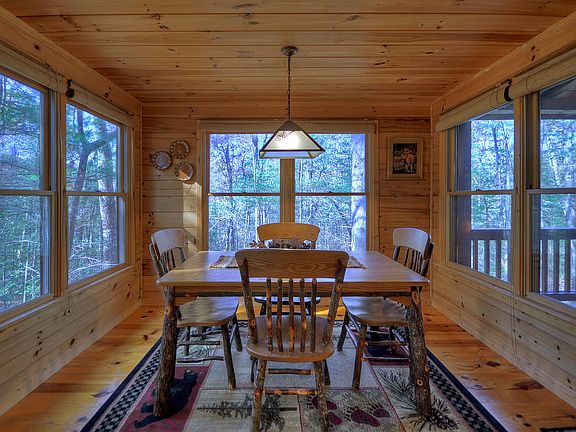 Perfect mountain retreat with private location, surrounded by old growth forest. Cabin features cathedral ceilings with exposed beams in bedrooms as well as the great room, kitchen and dining room. Wrap around porch with covered deck offers a chance to just sit and enjoy the natural beauty of the forest. Dining room is surrounded by windows and provides enough room for the entire family. Wonderful stone fireplace with gas starter makes it easy to enjoy a wood fire on those cool evenings. This one is move-in ready and in perfect condition!