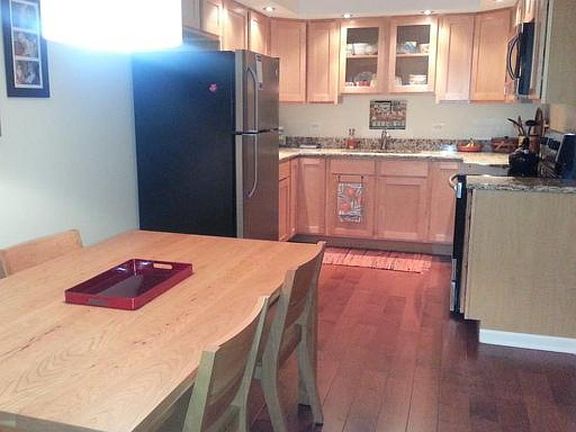 GORGEOUS-TOTAL NEW UPDATE- ** 2-bedroom larger Chelsea model . Garage #27. Private balcony. ALL NEW stainless steel and g ranite kitchen with recessed lighting and raised ceiling. Be autiful glamor bath. NEW sparkling dark maple hardwood floor s thruout. Crown and cove molding. Home Warranty. Security e ntries. 4 storage areas. Elevator. Flexicore. Party, Laundry