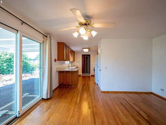 New heating & AC system 2018.Beautiful garden.Covered patio. Living room with wood-burning fireplace. Hardwood flooring throughout. Three bedrooms on the main level. Full bath with jetted tub. Additional BR up. Storage upstairs is not included in finished sq. ft. Inside laundry room. Backyard with covered patio. RV parking with clean out. Newer Anderson slider door.