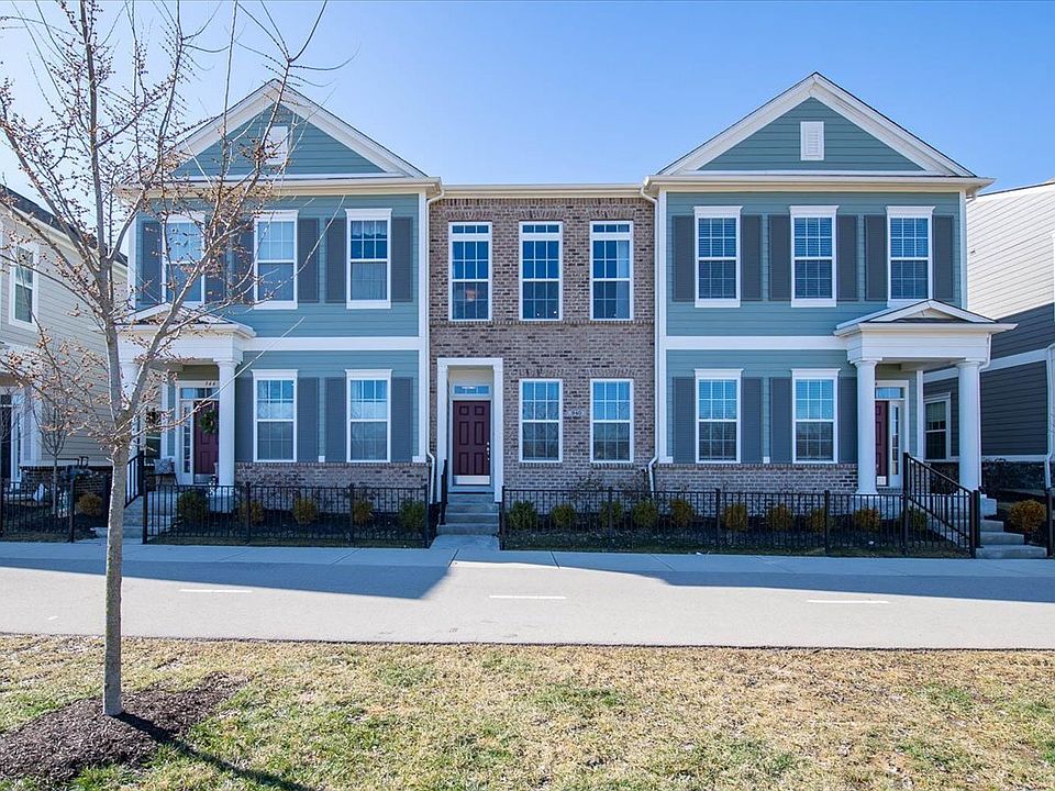 !!!!! Wallpaper has been removed and walls have fresh paint! Move-in ready!!!! Open floorplan townhouse with beautiful, real brick wall as the focal point of living and dining room. Gourmet kitchen with center island, quartz countertops, tile backsplash & stainless steel appliances. 9-Foot ceilings on the first floor and 10-foot ceilings on the second floor. Custom-made shades in primary bedroom. Upgraded lighting, mirror, hardware and accent wall in primary bath. New plush Mohawk carpet in primary bedroom. Ceiling fans added. Honeywell T9 smart wi-fi thermostat with sensors in each bedroom. Water softener added in 2023. Extra shelving added to pantry and primary bedroom closet to maximize storage space. 2-car tandem garage. Great layout for guest suite on main level, separate from primary living space on the 2nd floor. Maintained yard and landscaping, which means you don't have to mow! Great view of open greenspace in front of this townhome. Walking/Biking distance to all downtown Carmel has to offer. New construction price of this David Weekley floorplan is now $354,990. Save money on a home that is move-in ready, with more features than new construction!