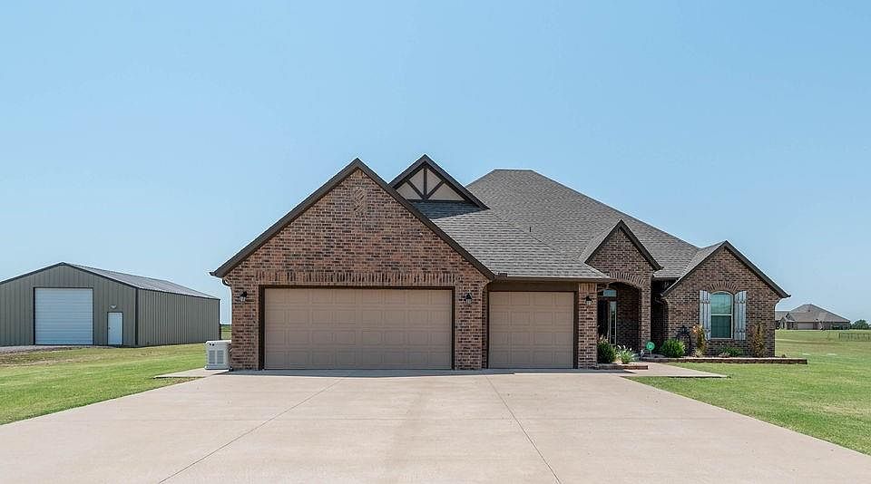 Better than new! Come see this well built, upgraded home on 5 acres! Amenities include: a 30'x40' insulated steel shop with electric and doors on both ends, a whole house back up generator, black chain link fenced yard, spray foam insualtion, tankless water heater, a huge outdoor living space and more! The extra large fenced yard is complete with a storm shelter and custom chicken coop! Full guttering and landscaping round out the exterior, this one is ready to be enjoyed. The super functional, true four bedroom layout with tall ceilings will meet all your needs. Wood look tile in the main areas for beauty and longevity. This one has it all.