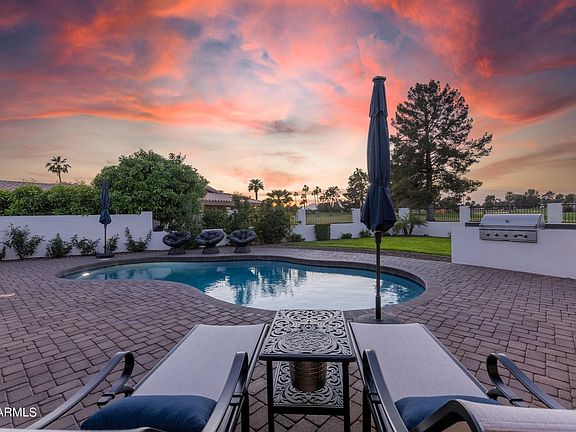 Breathtaking luxury overlooking the 7th green at the Wigwam in Old Litchfield Park. Fall in love with your stunning backyard oasis and separate guest casita. The entire home is completely remodeled including new windows, bathrooms, cabinetry, plumbing, luxury vinyl wood flooring, and a gorgeous solid walnut pivot front door. Entertainer's dream kitchen with Cambria quartz waterfall countertops. Gourmet kitchen includes a 6-burner Wolf gas stove with Brizo pot filler, Sub Zero built-in refrigerator plus separate wine and beverage fridges, quiet Cove dishwasher, Jeffrey Court marble backsplash, and walk-in pantry with pocket doors. Brand new roof and 3-year-old AC. Heated pool is freshly resurfaced with PebbleSheen, a new variable speed pump, and salt water filter.