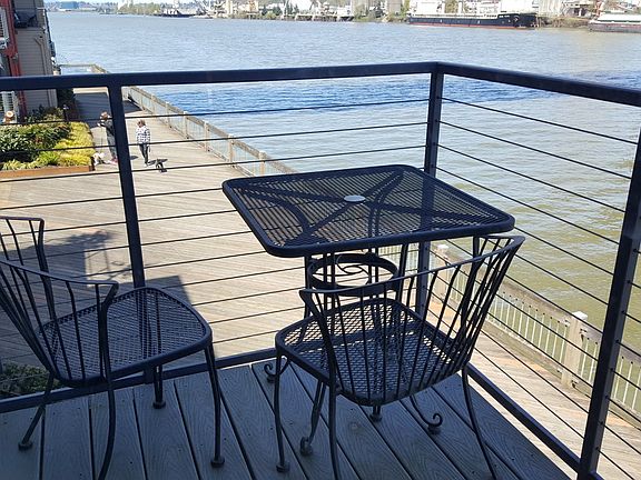1/1 upper waterfront condo in sought-after McCormick Pier. Beautiful views of river. Granite kitchen, laminate floors on main level, central AC. Washer/dryer hookups in unit. Seasonal pool, year-round spa, BBQs on property. Gated waterfront access. Steps from pool&spa. Walk to store, Cafe & Pub, & Pearl District entertainment. 1 dog/cat allowed w/BOD approval. No rent cap. Allow approx. 90 days to close. Buyer to verify schools & sq ft.