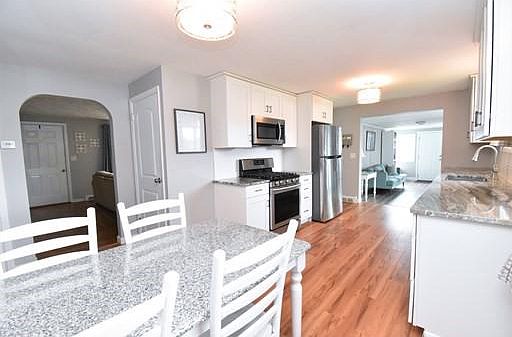 WOW! Remodeled three bedroom Ranch is waiting for you to move right in. Enjoy stunning new eat-in kitchen with white cabinetry, granite countertops and stainless steel appliances open to bright and sunny den with built-in closet organizer and access to fantastic outdoor space, entertainment size fireplaced family room, three spacious bedrooms, gas cooking and heat, and new full bath. The enormous fenced back yard with beautiful stamped concerete patio and pergola is the perfect spot to entertain with family and friends. Additional updates include: new gas hot water heater, septic system 3 years old along with young roof, windows and furnace. All the work has been done, just sit back and relax. Showings start Tuesday, 8/24.