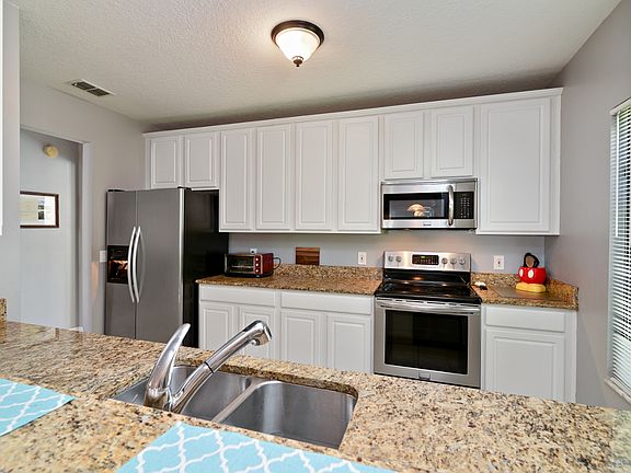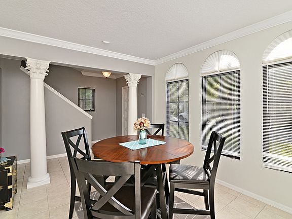 This is an amazing well maintained south village home, it has everything you could ever want in a great home of Celebration. The home sits on a corner lot which gives you extra space in the back yard and a great covered lanai between the garage and the home. This 3 bedroom, 2.5 bath home has so much to offer. A bright front room that can be used as a formal dining room or an office with beautiful architectural columns that greet you as you enter the home. The downstairs of the home is all tile floors with a large family room with a large pass-through to the kitchen, and a dedicated laundry room. The wide kitchen has great granite counters and is set up for the chef in mind. The second floor boasts a large master bedroom with walk-in closet and ensuite bathroom with dual sinks. The other 2 bedrooms share a jack-and-jill bathroom. The home has great curb appeal and a large fenced back yard. The upgraded Mediterranean style clay tile roof not only looks beautiful, but is low-maintenance and long-lasting. This prime location is a short walking distance away from the many parks, walking trails and the Spring Park Pool. Come see this home and you will appreciate all it offers.