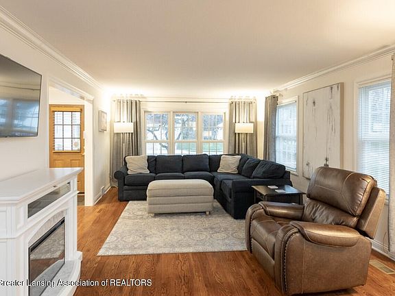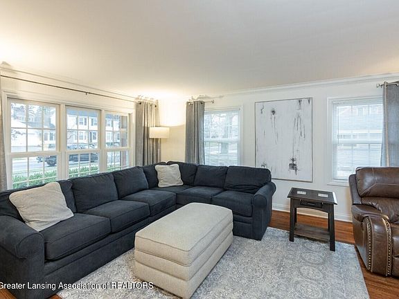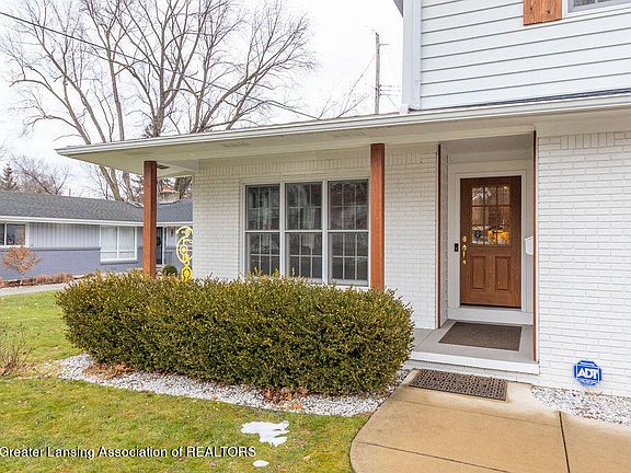 East Lansing, oh my! Nestled in the heart of the Glencairn neighborhood. Gorgeous lot on picturesque street that backs up to Robert Shaw Park. Charming, immaculate, updated, and ready for the new owners with a 2-car attached garage! Gleaming hardwood flooring and crown molding throughout most of the home. The center hall foyer takes you into this fabulous home and open floor plan with swing and sliding doors that allow spaces to be opened further. The main living room opens to the formal dining with access to an amazing 4 season solarium which is absolutely breath taking with floor to ceiling windows, special ceiling heights plus access to the spacious fenced-in rear yard with dozens of evergreen privacy trees. Over the top kitchen with custom cabinetry, deep sink, newer faucet, corian countertops, subzero refrigerator with matching wood exterior, and a gas range and newer dishwasher and sink garbage disposal. Three fabulous bedrooms on the second floor with a deluxe primary bath. Beautiful tile work and quaint features in both upstairs baths. Gorgeous white and frosted glass sliding barn door in master bedroom. Newer water heather. windows and insulated vinyl siding. HVAC with 3 separate controllable zones (first floor, second floor, and atrium) that allows for temperate control in separate areas during warm and cold months. A completely new roof installed in 2018, updated light fixtures throughout, updated cedar posts and window shutters installed by current owners, finished rec room plus a B Dry system. Basement with tall ceilings and lots of useable space. Current owners are leaving the swing set in the backyard. Walkable to Glencairn elementary school, MSU, eateries and more.