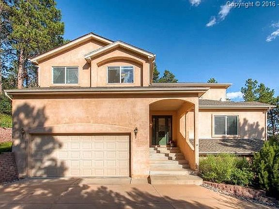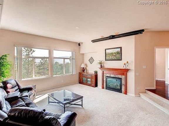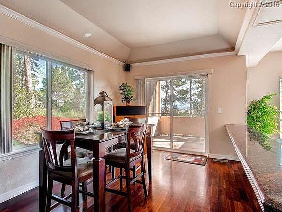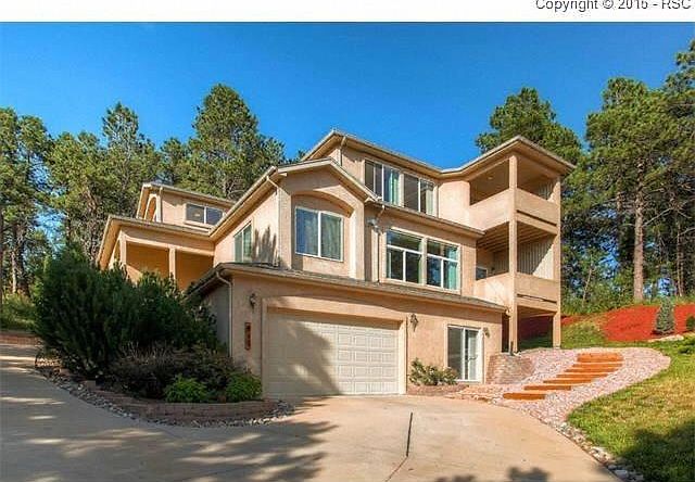 STUNNINGLY BEAUTIFUL HOME W/ BREATHTAKING PANORAMIC MOUNTAIN VIEWS! Gorgeous Bolivian cherry wood floors thru much of main level including the gourmet kitchen w/granite counters. Sunken living room with gas fireplace, massive windows with views! Spacious home office on main level with French doors! HUGE MASTER RETREAT w/ gas fireplace, private deck overlooking the Rocky Mountain Front Range and Pikes Peak * 5-piece master spa w/ 16x7 walk-in closet ***MORE*** 2nd deck off formal dining room on main level - also with stunning Front Range and Pikes Peak Views! Walkout basement with fantastic rec room, gorgeous marble flooring in wet bar with GRANITE slab counter ' and YES, Front Range views! * Travertine tile in contemporary, FULL, basement bath. Large storage area with room to make an additional 5th bedroom! 4-car garage * TWO laundry rooms ' one on main level & one on upper level * Central Vac * CENTRAL AIR CONDITIONING * TWO water heaters * Automatic sprinkler system* PAVED driveway & MUCH MORE! This home has been meticulously maintained. ***Rare find in Woodmoor *** UPDATED home with privacy, trees and breath-taking mountain VIEWS from all levels!
