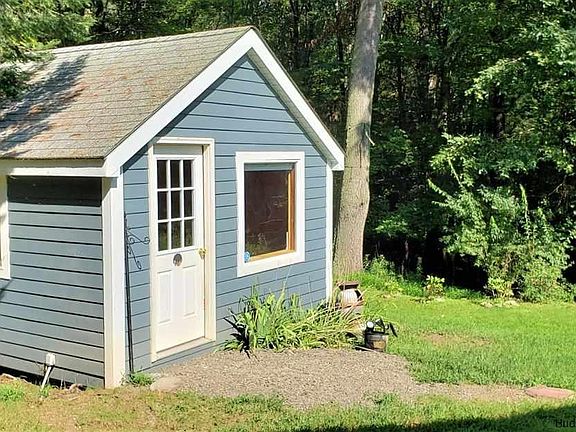 Adorable cottage with additional room on the lower level that could be used as a 3rd bedroom. Kitchen is renovated with stone countertops and stainless appliances. The top floor has living, dining and kitchen, with 2 bedrooms and the bathroom. The lower level is noted in the county records as 500 square feet has an additional living space with a pellet stove and an additional room with closets. Large screened in porch adds extra living space. The carport holds 2 cars and there is a large shed that can be used for lots of storage or park a car. The studio building is finished with electric, propane heat and a flat screen TV and is ready for many different uses. The property is landscaped and there are woods to play in.