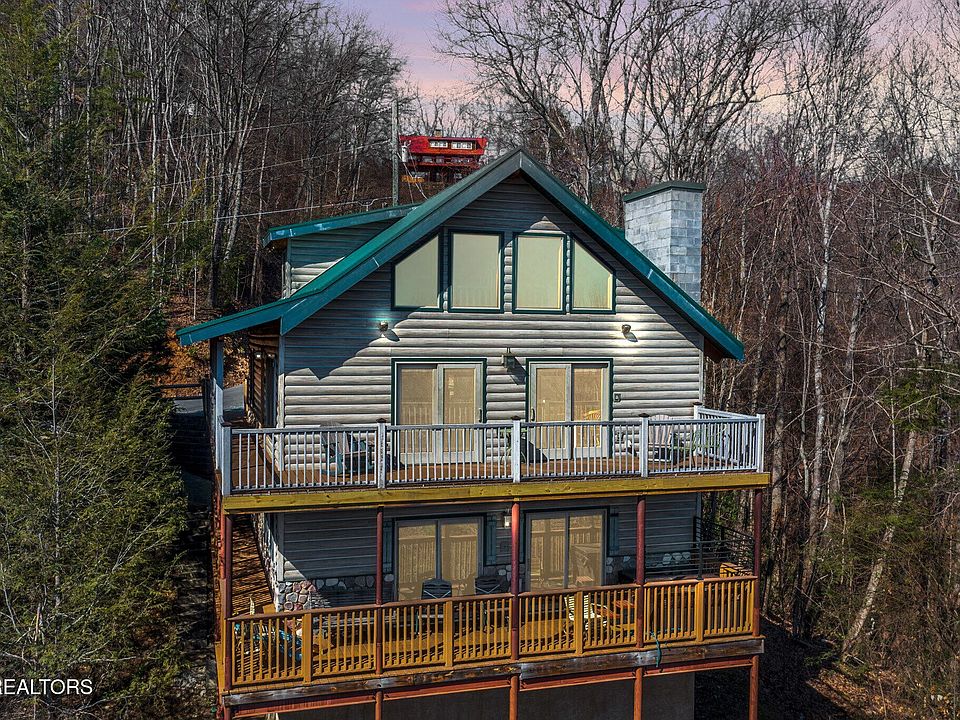 Outside, two large wrap-around decks feature panoramic views of both downtown Gatlinburg and Mount LeConte. A conveniently placed hot tub is the perfect place to take in a night cap while enjoying a view of the Space Needle or the sun setting on the Smokies.
