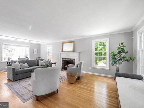 OPEN HOUSES CANCELLED! Expanded, light-filled colonial perched on a premium corner lot in beautiful Berwyn awaits lucky buyer! From the gently sloped side driveway, a stone path leads to a charming portico. Inside, the main level is awash in natural light, highlighting the hardwood floors, recessed lighting, custom millwork, replacement windows and neutral paint throughout. Just off the foyer sits a bright and sunny dining room with designer light fixture, moldings and custom window treatments. The dining room connects to the home’s centerpiece—a large, open kitchen-family area built for effortless entertaining and daily living. Part of a thoughtfully designed addition, the eat-in kitchen is a chef’s dream with its abundant cabinetry, island seating, double wall oven, gas cooking and wine fridge. The kitchen spills into a cheery breakfast room with multiple windows framing the beautiful backyard. The kitchen also overlooks a glorious sunken family room boasting vaulted ceilings, a gas fireplace and delightful window seat with custom woven shade. Access to the attached, two-car garage is just a few steps away. On the other side of the main floor sits a large living room with wood-burning fireplace, plus a powder room and expanded laundry-mudroom with custom cubbies and cabinet storage. Hardwood floors continue upstairs, where you’ll find custom plantation shutters and closet organization systems throughout. The impressive primary suite features vaulted ceilings, an ensuite full bath and walk-in closet. A full hallway bath and two secondary bedrooms are just down the hall. The fourth bedroom—currently accessible through the primary suite—could be modified for direct hallway access or left as is to function as a home office, sitting room or nursery. The finished basement offers even more space for recreation and play and includes a home gym. Outside, well-tended vegetable beds are nestled among the expansive greenspace, along with a lovely garden trellis with retaining wall and newer bluestone patio with direct access to the kitchen. Located in a friendly community with an active neighborhood association that hosts many events such as progressive dinners and a holiday cookie exchange. This home is mere minutes from Wilson Farm Park (watch the July 4th fireworks from the side yard!), Gateway Shopping Center, several premier parks and trails and award-winning T/E schools.