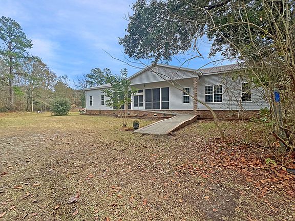 This energy-efficient home is nestled on 4 acres in the country. The former owner installed a 34 SEER main house HVAC in 2017. New HVAC for back portion of the home in Dec 2022. Roof replaced in 2017. You may enjoy energy savings from the solar panels, one geothermal HVAC system, and radiant barrier insulation. As you enter the home, you'll be greeted by a spacious floor plan, easy for entertaining and everyday living. You'll also find a built-in radio intercom system. The kitchen is open to the family room and boasts granite countertops, an island with a breakfast bar, ample cabinet and counter space, and a pantry for additional storage space. The spacious master bedroom features outside access, a walk-in closet, and a large handicap accessible bathroom, with a large walk-in shower and...a handicap accessible soaker tub. The rest of the bedrooms are also spacious in size. Located off of the front porch and garage, you'll find a large mother-in-law suite, which is handicap accessible and features a walk-in shower and enough space for an exercise room. You could also use this space as a game room, entertainment room, or home office or add some bedrooms. The huge four-car attached garage, with wheelchair ramp, gives you plenty of space for parking and storage. Need more storage? There is an approx 800 sq ft out building and a drive-under pole barn as well. The large sunroom and huge backyard will be perfect for grilling out, entertaining, or watching the kids play. In addition, the property offers both wooded and open areas. You'll find abundant deer and wildlife, park-like pastures, good road frontage, and some mature timber. There is plenty of space to plant a nice garden. This property has tons of potential! Conveniently located near Lake Moultrie, Lake Marion, the Rediversion Canal, and the Santee River. It's close to the Palmetto Trail, as well as multiple Wildlife Management Areas. Garage also has a generator, but new owner has not tested it.